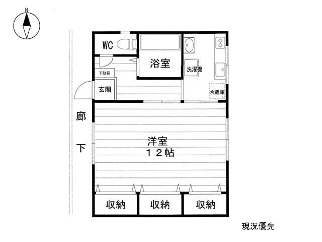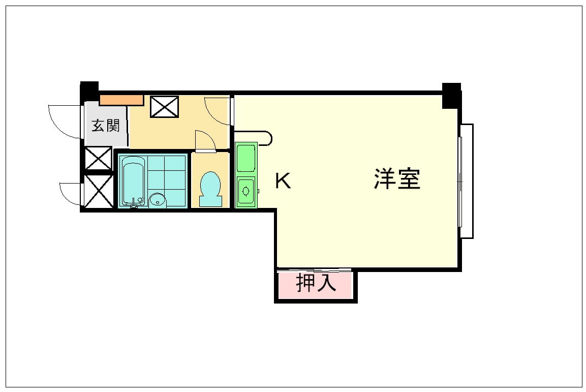 | 間取 | 1K(K2帖/洋室6帖) |