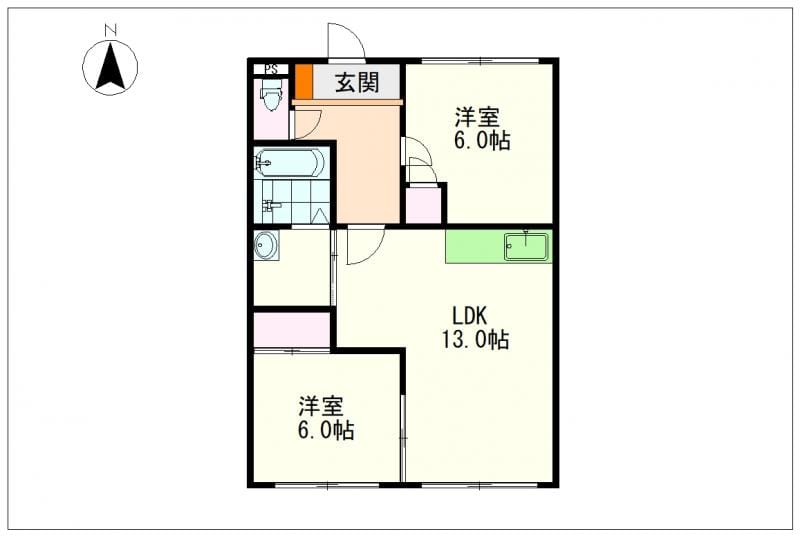 | 間取 | 2LDK(LDK13帖/洋室6帖/洋室6帖) |